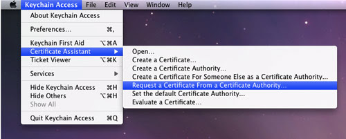 2. Select Keychain Access'Certificate Assistant'Request a Certificate From a Certificate Authority (see Figure 1):